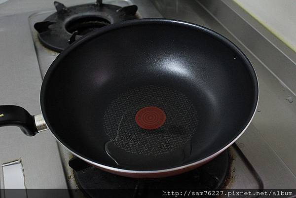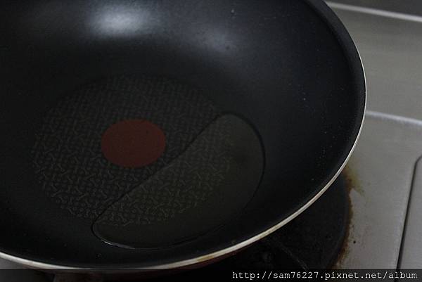 首先加點油在鍋子或是平底鍋~老闆娘特別叫我注意她加了多少油~她說她門的貢丸不加澱粉~所以在煎的過程當中不會吸油~