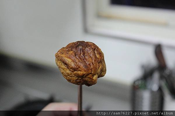 煎完的貢丸要馬上吃~不然就會變得想這樣乾乾扁扁的~外型就不討喜了~但無損貢丸的美味!!!